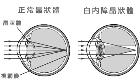 眼睛內的晶體就像照相機中的鏡頭原理一樣,能把影像清晰地聚焦在眼底。晶體本是晶瑩通透的,但若然當它變得渾濁時,影像便會變得模糊不清。