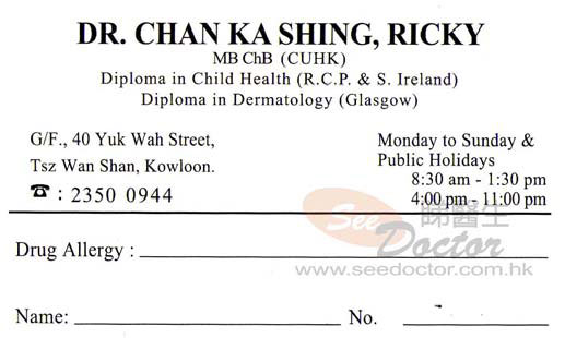 我家父因為患上急性風癩而急需求醫。慈雲山毓華街40號有3間診所連住,3間係星期日都有開門,左面同右面2間都爆滿,唯獨中間既陳嘉成醫生無人睇,情急之下就入左去睇。點知有個奇怪既$20登記費,爸爸因為年紀大忍唔住全身痕癢太辛苦,所以俾錢登記睇醫生。當日係由第二個陳醫生當席,佢hea hea地咁診症,好彩打左支針之後止左痕。因為當時本人不在場,又孤漏寡聞,對於聞所未聞既登記費傳有疑問,所以第二日打去診所問姑娘了解。我同第一位接線既姑娘講述情況同表明致電原因,佢叫我等等就交帶俾第二位姑娘。第二位姑娘接聽之後我再複述一次情況同致電原因,問佢點解要收登記費同登記費既作用係咩。個位姓邵既姑娘開始轉態,佢答話我呢到話要收登記費咪要收囉,咩作用咪問你攞張身份証幫你填資料囉。佢只係將我條問題用差既態度敘述左一次...丫 ,佢加多左句話如果我去政府醫院睇急症都要俾百幾蚊登記費wor。如果佢既條件比較係成立既話,我唔明點解間間診所都無收登記費唯獨係佢呢間要收,而且服務重要咁差tim wor.. 咁我得唔到個合理既解釋就更係再追問佢啦,點知佢態度越黎越差....佢突然問我爸全名,我以為有轉機佢會幫我俾個新既解釋我或安排退款咁啦。點知原來佢只係想起我底紀錄在案,再以我唔係病人本人為理由,叫我一定要帶埋阿爸過去佢診所先好再同佢傾,否則佢唔會再答我。我見佢都好惡咁同我講野同無誠意去令到件事愉快D,我就同佢遘唔該晒你丫byebye。佢就一句野都無講好無禮貌地cut線。我唔會勞煩年紀大重未完全好番既父親大人去搵德行有問題既醫生同護士去理論。