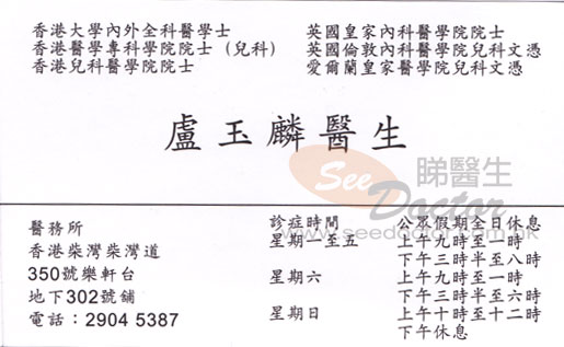 較早前,我囡囡有少少發燒,於是有囡囡去睇盧玉麟醫生。