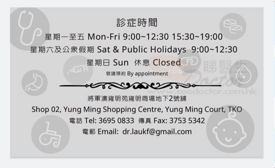 • 輪候時間 : 需預約準時