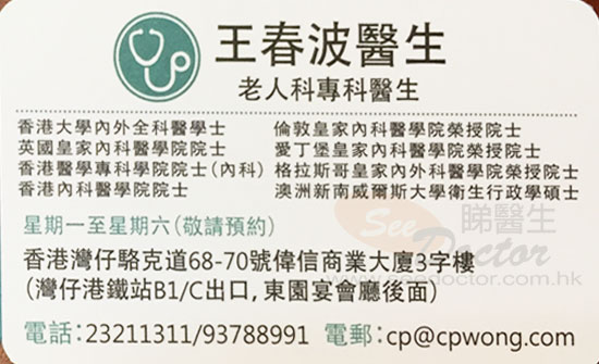 王春波醫生老人科/內科名片