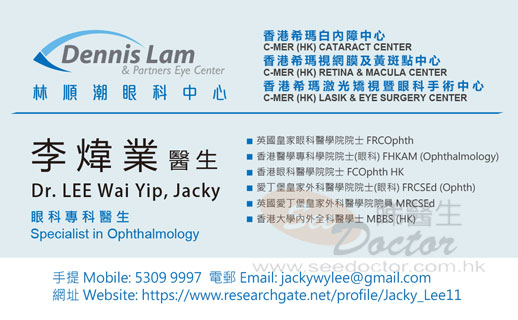 本人是由視光師建議看眼科醫生的,當時有些迷惘,因為本人只有看過幾次而家那些醫生亦上了年紀,看李醫生都是機緣巧合下,因為本人公司的醫療保險是李醫生集團有的,原本是由我同事介紹下看集團另一位醫生的,當日打去預約時,有位男同事說早上有位,幫我預約了李醫生,剛巧診所在我公司附近,本人就即日前往,當見到李醫生的時候已講解問題所在,並指出眼部有什麼疾病,並且建議做一個小手術,當第二次見面時李醫生為本人做手術亦很有耐性解釋是次手術,另外亦會跟進第一次見面時所建議的方案,另外本人家人亦由視光師,發現眼壓高問題,整本人即時介紹給家人,家人見醫生時,亦解釋得很清楚,並向家人說做那個檢查時是不會收取另一次診金,現在本人和家人都需要定期覆診,每次醫生都很有耐性和解釋得很清楚,醫德很好值得推介