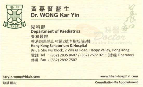 Department of Paediatrics, Hong Kong Sanatorium & Hospital 9/F, Li Shu Pui Block, 2 Village Road, Happy Valley, Hong Kong