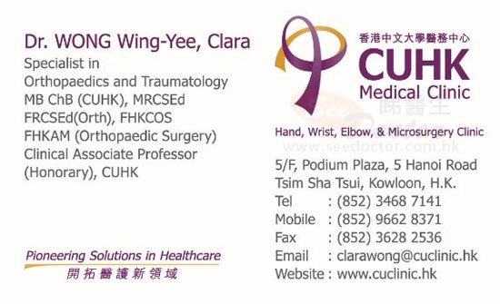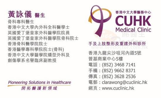 因我有其他關節痛,懷疑是風濕病,黃醫生第一次見面時好詳細咁問及我所有關節痛開始的時間及曾做過的檢查及治療。之後檢查同MRI後確定係TFCC整親,一係就做手術一係就打PRP試下好唔好到。醫生都好詳細同我解釋兩個選擇有咩分別,同埋之後的復康係點。我唔想做手術,打左PRP。雖然打完PRP係非常之痛,但之後做埋復康後,整體的痛楚大減,手腕關節亦無咁鬆,可以做到日常家務同應付工作。