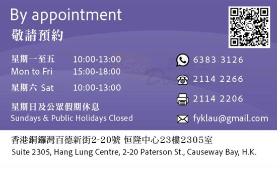 • 輪候時間 : 需預約準時