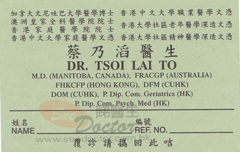蔡乃滔醫生醫生- 尋醫經歷詳述: