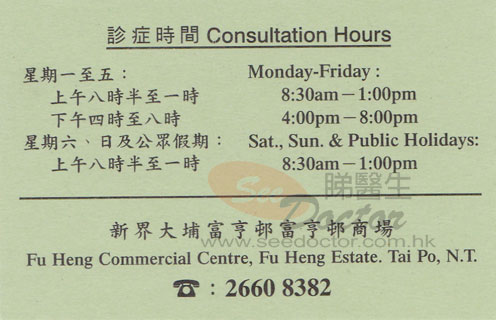 • 診金收費 : ~ $ 300