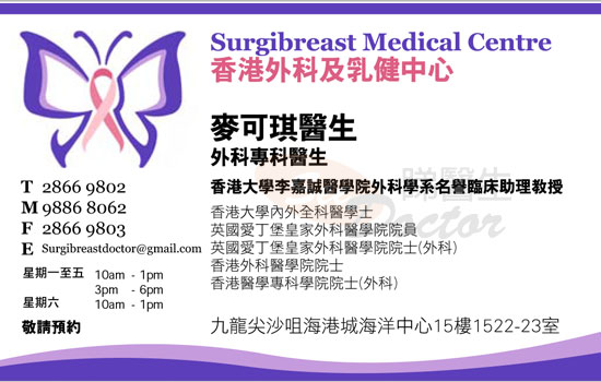 多謝麥醫生細心聽病人說法,另到我本人左邊乳房瘤清理得好靚,手術完佢會親自通知我媽媽我的情況。雖然手術後今早傷口痛,但佢有開藥比我食。