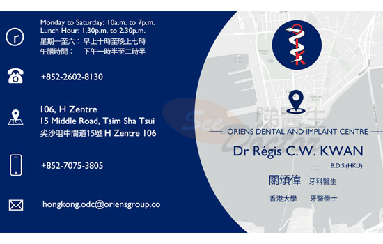 尖沙咀診所: Oriens 牙科牙植牙中心 尖沙咀中間道15號H Zentre 1樓 106 26028130; 70753805