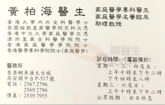 黃柏海醫生家庭醫學名片