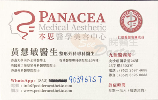 9年前已經找黃醫生,幫我做雙眼皮,當時做完效果好滿意,隨住年紀大 化妝習慣,導致眼皮鬆弛,雙眼皮向下垂!現在再次找醫生,重修雙眼皮!黃醫生好專業細心,還很溫柔咁向我分析講解,令我9年前相片紀錄,都有keep低開返,比我睇來同我分析!醫生叫我想清楚,決定是否覺得有需要要重修,一點不hard sell!值得推薦黃慧敏醫生