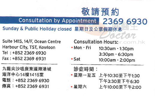 打咗忻醫生私人電話問問 電話裏頭都感受到佢嘅自信同親切 於是就打去診所預約見醫生