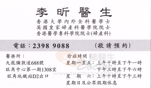 好喜歡李昕醫生婦科可以即日預約,去到睇醫生都不用等