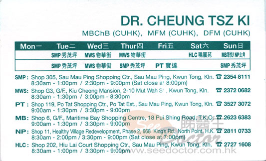 Dr Cheung Tsz Ki Name Card