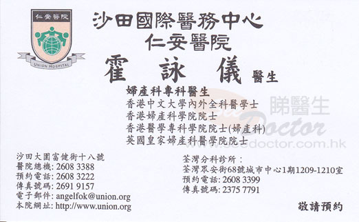 霍詠儀醫生婦產科名片