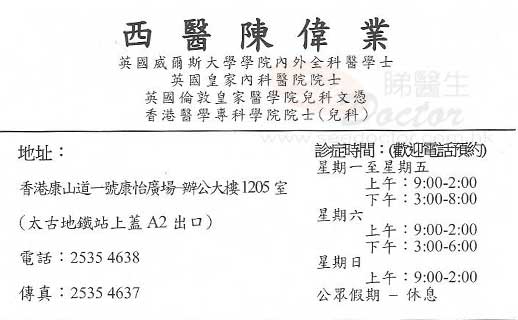 陳偉業醫生醫生- 尋醫經歷詳述: