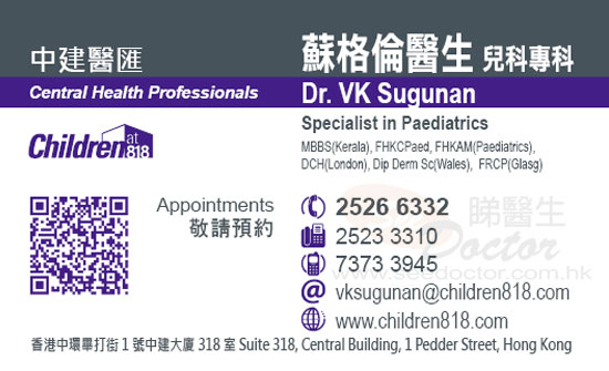 PS: 我們有一次因為敏感而入了醫院,才知道Dr VK Sugunan是香港兒童皮膚科的權威