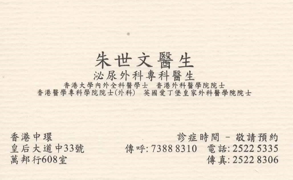 朱世文醫生. 聽佢講10分鐘 冇專業意見 , 講真 流流地. 只係有我講. 佢答. 都唔知邊個先係醫生, 陪佢傾完計 就比左1500蚊. 錢多可以考慮下去搵佢傾計