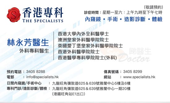 林醫生替我做大腸檢查期間發現有數粒線瘤息肉, 隨之小心及安全地切除. 事後詳細地解釋病理原因和主治方法, 得悉心照料及安排令本人十分之信賴及安心, 真是無限感激.