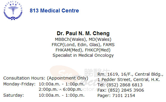香港中環畢打街1-3號中建大廈16字樓813醫療中心