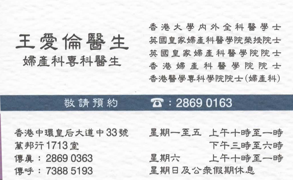 本人無人介紹,只是看網站見到好評多過負評又近我公司即管試下。之前我已看過另外一個婦科醫生,她建議我做宫腔鏡手術。我找王醫生取第二醫療意見,我亦都有同她講清楚。首先她講野態度差,寸嘴之餘又幫唔到個客。她幫我檢查完都建議我做手術,什麼都没有補充和解釋。要做手術都係我預計之內因做手術取到的組織化驗先知細胞有無變異。正常都會問手術過程和風險,她答我你之前個醫生有講,你找我做手術先講。(即是什麼都無講)。之前個醫生有無講唔關你事,我來求診就係要你俾醫療意見。你咁答我,根本俾唔到全面醫療意見。浪費我時間和金錢,一定唔會再幫襯。