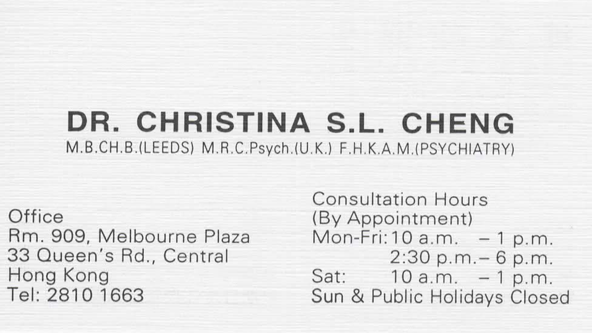 • 診金收費 : ~ $ -