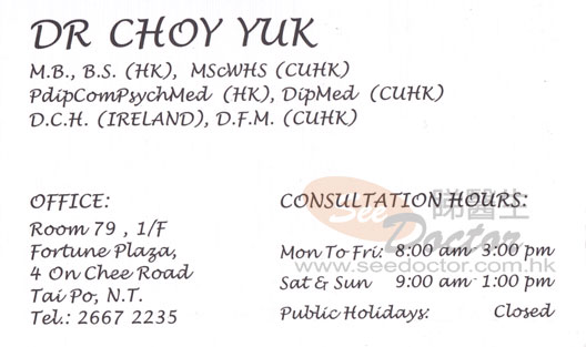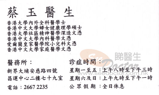 蔡玉醫生醫生- 尋醫經歷詳述: