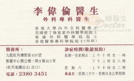 李醫生細心有禮,解釋詳盡,手術手勢好,收費合理,值得一讚在此多謝他對我媽媽的照顧,得已順利康復!