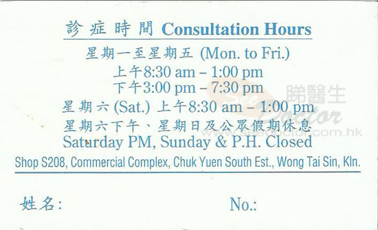 • 輪候時間 : 需預約準時