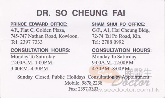 Dr SO CHEUNG FAI Name Card