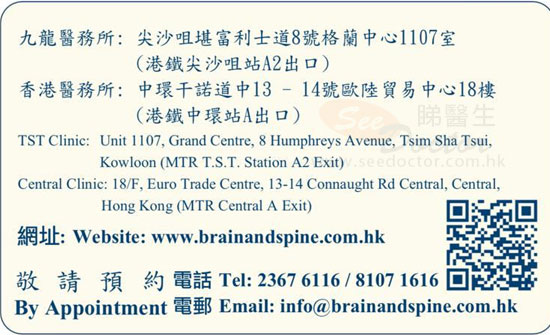 在網上找到神經外科彭醫生,聽他建議再做一次詳細的磁力共振檢查,終於找到了原因,原來是頸椎間盤突出導致耳鳴。彭醫生教我改善生活及飲食習慣,及轉介脊醫治療,經過幾個月多年纏繞不適的耳鳴已消失了!