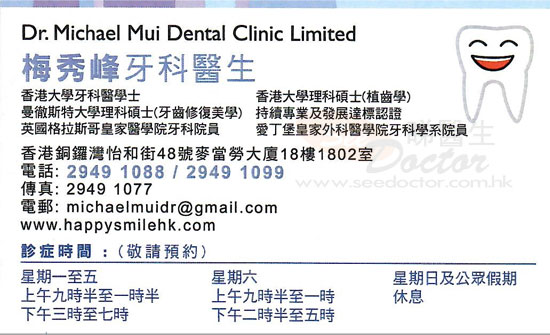 我係超級怕睇牙醫,不過梅醫生除外,因為佢真係我睇過禁多個牙醫當中最細心同親切,雖然佢病人好多,有時候要等,但佢幫你治療時你會知道點解,因為佢會好有耐性將治療細節同程序話比病人知,都會細心聆聽問題再比專業意見,所以highly recommend!