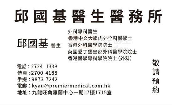 邱醫生幫我做左2次手術,一次割膽石,另一次做割腎上腺瘤,邱醫生雖然唔太多講話,但佢係一個做實事既醫生,當我在病時有問題及焦慮疑惑嘅時候,佢既講解,可比到一份信心我,聽完佢講解會令我個人無咁驚,唔似有d醫生,佢越講你就越驚,另外診所姑娘都好好人,好有耐性,所以真心多謝邱醫仁心仁術🙏🙏