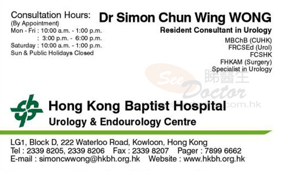 Dr WONG CHUN WING SIMON Name Card