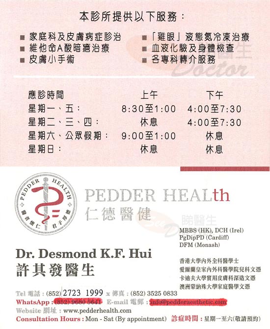 • 診金收費 : ~ $ 800
