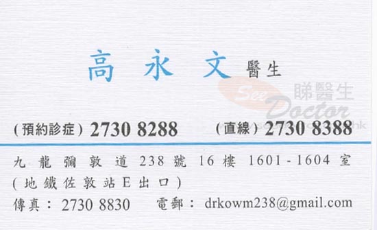 之前我腳骨受傷,高醫生好耐心咁同我解釋,而且佢診所有齊全的設備,即時幫我照x光機,收費都好合理.
