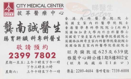 我自己本身有肝炎,十幾年前看過龔醫生一次,由於返夜班,之後並沒有每年到龔醫生做檢查,最近阿媽屙屎屙血,立即叫佢去龔醫生那,龔醫生當然一定建議我阿媽入院檢查,我媽回來心大心細,因為覺得要用好多錢,我同我媽講錢帶不走,立即叫佢打電話去龔醫生診所安排入院,最後做了內窺鏡發覺大腸有腫瘤,是腸癌,經龔醫生轉介給另一個外科手術醫生王焯豪替我媽做切除手術,雖然之後已經不是龔醫生主治,但龔醫生也很好,在院其間也有來看我媽媽,確是仁心仁術的醫生,我在此替我媽謝謝龔醫生,願神祝福以及你的家人,龔醫生長命百歲,很多病人仍然需要你