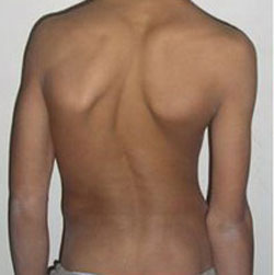 一般輕度側彎(少於15度)在外觀上不容易察覺到,也沒有任何痛楚;中度側彎人仕(15度至45度)的肩胛骨會輕微凸出,一邊肌肉會特別崩緊僵硬。