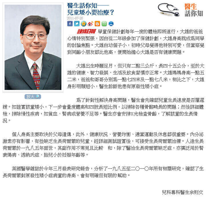 兒童矮小要治療?