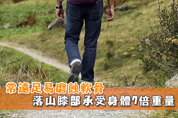 譬如一名體重120磅女士,落山時,膝部會承受840磅,尤其行得快時,只有一隻腳觸地,所以每落一步,左腳或右腳便會承受龐大壓力,加劇膝部軟骨磨蝕風險。