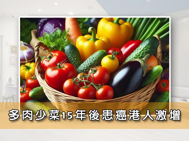 港人生活忙碌,每日均外出用膳,不知不覺間增加患癌風險。醫院管理局癌症資料統計中心預測,十五年後患癌港人將大增近五成,由○二年的二萬一千人上升至三萬一千人,當中與多肉少菜有關的大腸癌,將成為癌症頭號殺手。該中心總監羅振基解釋,這是根據現時港人多肉少菜的飲食模式所推算,而這模式則與港人傾向出外吃飯的習慣有關。
