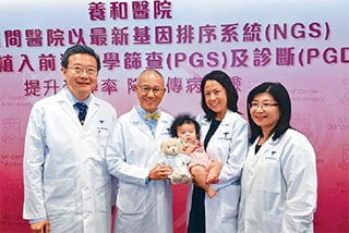 不少高齡或不孕婦女會選擇進行人工受孕,養和醫院引入「新一代基因排序系統」(NGS)技術,為進行人工受孕的夫婦進行「胚胎植入前遺傳學篩查」(PGS)及「胚胎植入前遺傳學診斷」(PGD),以篩選正常胚胎及提升受孕率,亦可減低嬰兒患遺傳病的風險。
