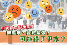 | 甲狀腺功能亢進簡稱甲亢,為自體免疫失調疾病,男女發病比例1:9,女性尤其是20-45歲人士患病更屬常見。除了手震、心跳、眼凸、消瘦....... |