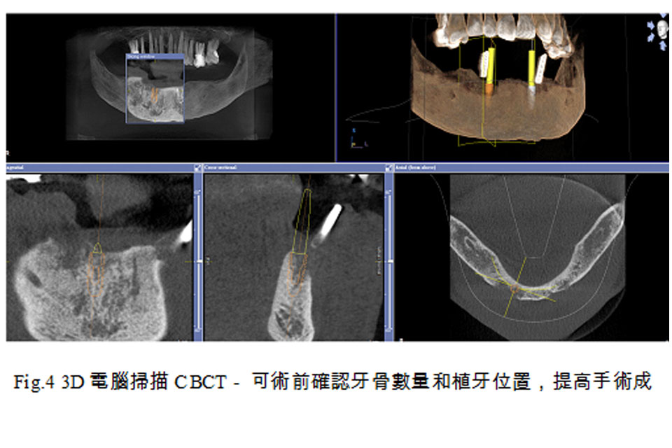 患者接受植牙之前,牙醫會為其進行詳細的檢查和套取牙模,並拍攝三維電腦掃描(CBCT)以確保避開重要的神經和血管。