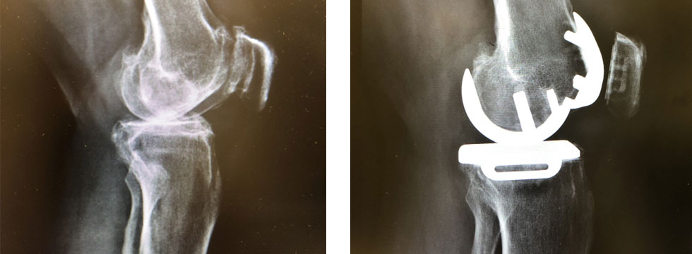 今年68歲的梁耀榮在退休前任職海關,腳痛問題已纏繞他十多年,平常走路十多分鐘已需休息,行路過多更會腫痛、發炎,其後雙腳更惡化至變形,服食止痛藥、塗抹藥油、做針灸都無甚效用。他到威爾斯親王醫院求診,獲悉雙腳退化,但置換關節需輪候5、6年,醫生遂轉介他至雅麗氏何妙齡那打素醫院,一年多後進行「局部膝關節置換術」,同時置換雙腳內側、外側膝關節及膝蓋關節。