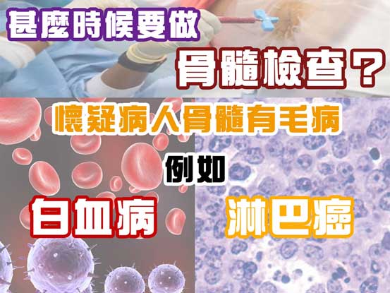 其實骨髓檢查很多時候都是醫生懷疑病人骨髓有毛病,例如白血病,病人就會需要做骨髓檢查去確診。另外。如果病人患有淋巴癌,也可以檢查骨髓來觀察淋巴癌是否擴散到骨髓。所以,骨髓檢查對血液科醫生來説是相當重要的。