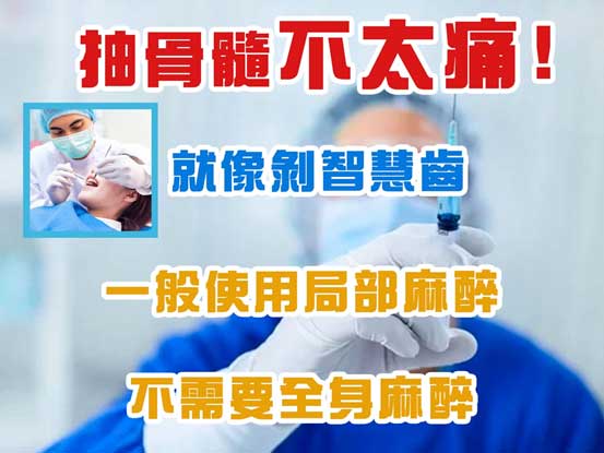 如果醫生小心進行骨髓檢查,應該不太痛。 一般來説就類似拔牙,就像剝智慧齒一樣。我們一般會使用局部麻醉,通常也不需要全身麻醉,而痛楚是可以接受的。