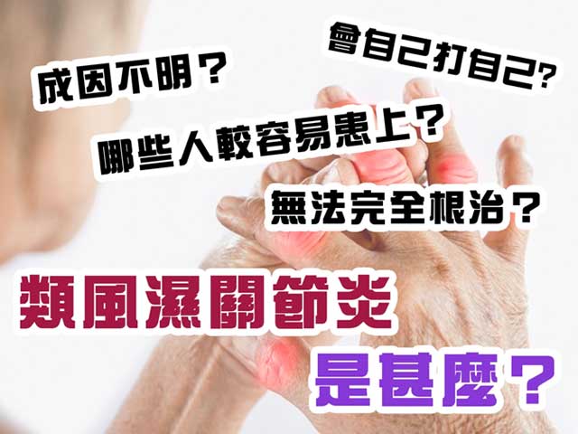 相信大家都有聽過類風濕關節炎。這個病在香港十分普遍,但到底類風濕關節炎是甚麼呢?哪些人較容易患上類風濕關節炎?這個病是否無法完全根治?藥物只能達到止痛的效果?我們一起去了解下!