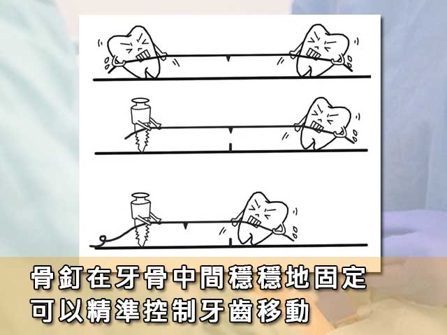 有,就是骨釘! 它在牙齒中間穩穩地固定,是一個不會產生任何移動的施力點,可以精準控制牙齒移動。