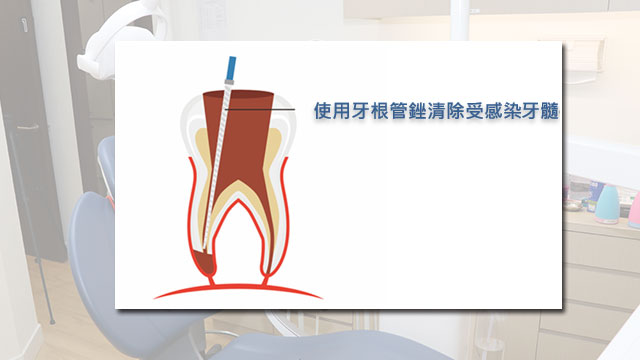 4. 清除感染:使用專門設計的牙科工具如牙根管銼,將牙髓與受感染的組織一起去除,使牙齒從此不再感到疼痛。